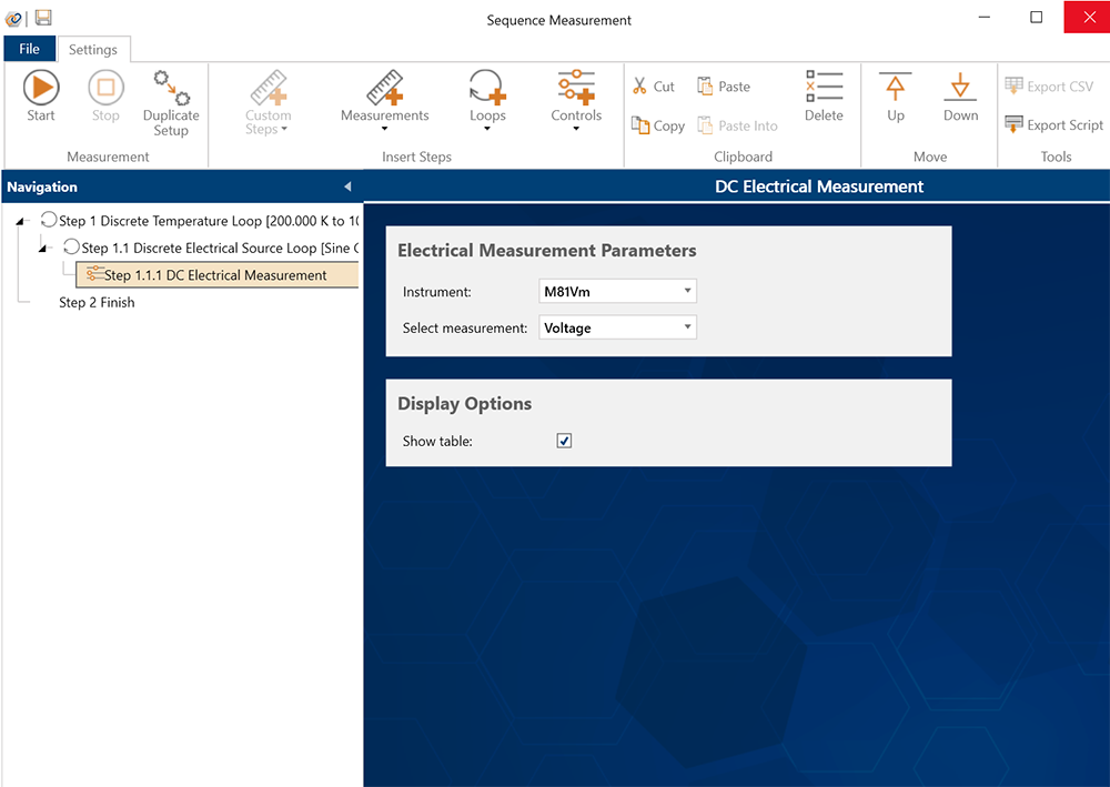 - Build a sequence using drag-and-drop components to control temperature, field, and electrical parameter sweeps
